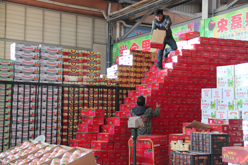 山東小伙宋磊來到南通從事水果生意5年,從流動(dòng)小販起步,如今在通農(nóng)物流有了固定攤位,每年春節(jié)前夕他都很忙,為了保證貨品,他常常親自到水果基地采購(gòu)洽談,有時(shí)坐車坐到雙腿發(fā)麻。這幾天他常常早上三點(diǎn)起床,簡(jiǎn)單吃個(gè)泡飯就到通農(nóng)物流開市,水果販子4點(diǎn)鐘就來交排隊(duì)批貨了,上午八點(diǎn)以后是散客人流高峰,宋磊常常忙到中晚飯并做一頓吃,因?yàn)榇哼\(yùn)蘇通大橋太堵,他的貨常常要到夜里十一二點(diǎn)才抵通,除夕他準(zhǔn)備下午早些收攤,難得一年和妻子、孩子、父母一起吃頓團(tuán)圓飯,初一帶老人孩子逛逛商場(chǎng),給他們添些新衣服,初二再開市。