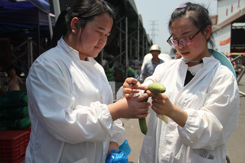 從五月份開始至八月份,通農(nóng)物流將龍蝦、涼皮兩個(gè)品類交由第三方專業(yè)檢測(cè)機(jī)構(gòu)進(jìn)行抽檢,一月三次,將藥龍蝦、重金屬超標(biāo)涼皮拒之門外;夏季肉類易變質(zhì),在原有的瘦肉精、水分的檢查上,檢測(cè)員在現(xiàn)場(chǎng)還會(huì)進(jìn)行氣味、顏色的甄別,來判斷肉類是否變質(zhì);對(duì)于豆制品,檢測(cè)中心聯(lián)合蔬菜交易區(qū)做好溯源工作,深入部分豆制品生產(chǎn)廠家檢查原材料,查看現(xiàn)場(chǎng)衛(wèi)生情況;到豆芽生產(chǎn)基地,現(xiàn)場(chǎng)查看是否有農(nóng)藥添加,發(fā)現(xiàn)問題立即處理,拒絕進(jìn)場(chǎng)。