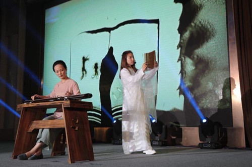 一掬細(xì)沙、一雙妙手,瞬間變化,靈動(dòng)間,將書香南通景象在光影與沙完美融合中躍然呈現(xiàn)。一曲《良宵引》清越和雅、細(xì)膩委婉,與沙畫藝術(shù)情景交融,唯美動(dòng)人。輕風(fēng)入弦,撫琴而歌,《詩經(jīng)•衛(wèi)風(fēng)•碩人》贊揚(yáng)的女子面若桃花、雍容嫻靜、她有著博大的胸懷,高尚的志趣。節(jié)目《博雅女性 魅力南通》以高雅的意境,融沙畫表演、古琴演奏、詩經(jīng)誦讀為一體的新穎形式獲得與會代表的一致好評。