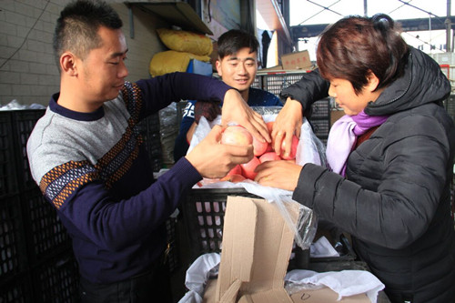 天氣漸漸寒冷,應季水果大量上市。每天凌晨天不亮,一輛輛滿載水果的卡車就陸續(xù)駛入通農物流水果區(qū),呈現購銷兩旺的景象。今天上午十點,記者來到交易現場時,許多水果攤位仍處于熱銷狀態(tài)。蘋果、蜜柚、桔子是每年冬季的水果“三寶”,占據了水果市場銷售的半壁江山。