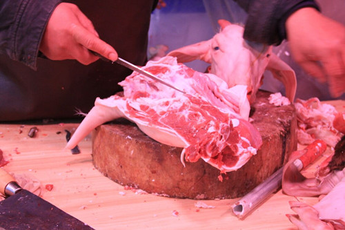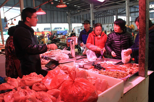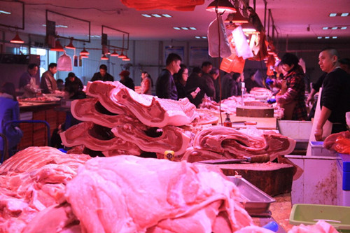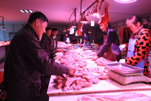 “冬季生豬養(yǎng)殖成本增加,成活率降低,仔豬飼料價格貴,市民對生豬需求旺盛,導(dǎo)致生豬收購價格上漲。”通農(nóng)物流分割肉交易區(qū)負(fù)責(zé)人潘繼東介紹,目前,豬肉夾心9.5元/斤、腿肉9.5元/斤、五花10.5元/斤、前蹄13元/斤左右,“預(yù)計到12月中上旬,豬肉價格會持續(xù)上漲。”
