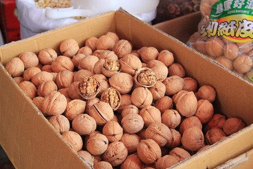 新上市的核桃價格略有下跌。在保興棗業(yè),特級新疆紙皮核桃皮薄果肉滿,去年零售18元/斤,今年只賣15元/斤,價格下跌兩成。而特級新疆若羌棗基本也在15元/斤。攤主王老板解釋說:“現(xiàn)在人們的生活條件好了,越來越懂得養(yǎng)生,種植戶拿準(zhǔn)了消費(fèi)者的這種心理,加大了棗樹、核桃樹種植力度,產(chǎn)量一高,價格自然就降下來了。”