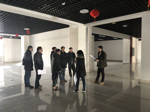 1月15日,客服中心主任游珩帶領(lǐng)招商科、物業(yè)科和安保部的負(fù)責(zé)人員來(lái)到糧油大廳,協(xié)調(diào)部署有關(guān)2018年通農(nóng)物流年貨展銷(xiāo)會(huì)的籌備工作。