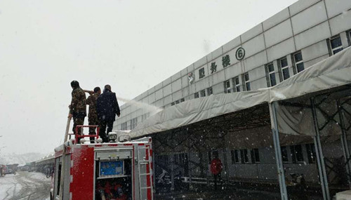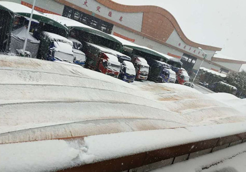 1月25日的中雪,讓通農物流銀裝素裹,臨時大棚的積雪厚度臨近15cm。為了預防大棚發(fā)生坍塌事故,安保部出動消防車應急處置,分兩個班組對臨時大棚灑水除雪,確保生產經營安全。同時安保部對各現(xiàn)場作業(yè)部門及時發(fā)放工業(yè)鹽,組織拋撒,防止路面、坡道結冰,減少意外事故的發(fā)生。(安保部 顧志勇)