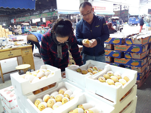 4月南方時(shí)令水果大量上市,口感最佳,價(jià)格下降得也快,從臺(tái)灣、海南、云南等地直銷過來的水仙芒、菠蘿、東方蜜等,與上周相比,價(jià)格呈現(xiàn)明顯回落態(tài)勢(shì),均價(jià)低出二到三成。芒果作為應(yīng)季水果的主要代表,銷售勢(shì)頭迅猛,本周銷量較上周增長40%,尤其是臺(tái)灣水仙芒在眾多品種的芒果中銷量最大,日銷量20噸以上,均價(jià)8.5元/500克。云南的桑葚個(gè)大、多汁、味甜,深受中老年市民的青睞,在品嘗的同時(shí)勾起人們兒時(shí)的回憶。浙江的東方蜜果肉松脆、細(xì)膩,批發(fā)價(jià)4-4.5元/500克;遼寧的櫻桃是目前水果中的新貴,因量少而價(jià)高,目前在30-40元/500克,隨著天氣轉(zhuǎn)暖,口感會(huì)更好,價(jià)格將走低。