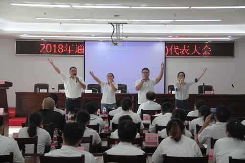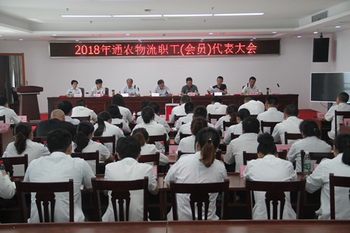 7月27日下午,通農物流在展銷樓4樓會議室召開2018年職工(會員)代表大會,會議由通農物流副總經理張勇主持,公司63名職工代表和2名列席代表肩負廣大員工的重托,滿懷喜悅的心情,光榮出席大會,會議共分七項議程: