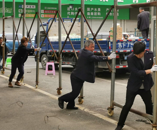 5月15日,由水果交易區(qū)經(jīng)理解雪峰帶頭,管理人員組隊(duì),集中到驗(yàn)車區(qū),移動(dòng)大棚,大家?guī)е痔祝爸?hào)子,發(fā)揮不怕苦、不怕累的精神,齊心協(xié)力,將十四個(gè)大棚全部移動(dòng)完畢。