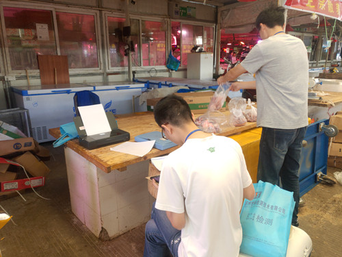 5月28日,市市場(chǎng)監(jiān)督管理局委托檢測(cè)機(jī)構(gòu)對(duì)通農(nóng)物流進(jìn)行抽檢。在水產(chǎn)區(qū)現(xiàn)場(chǎng)工作人員的帶領(lǐng)下,檢測(cè)人員抽檢了豬肉、牛肉、淡水魚(yú)、蝦4種水產(chǎn)品。現(xiàn)場(chǎng)經(jīng)營(yíng)戶(hù)也積極配合,對(duì)食品安全工作非常認(rèn)同。