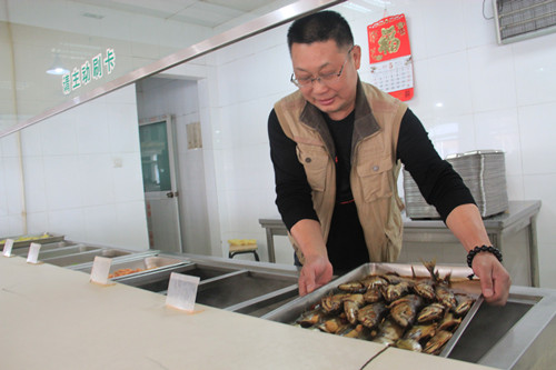 11點,午飯開飯時間到了。此時,一盆盆美味佳肴排列在桌上。等到單位員工全部用餐完畢,食堂的師傅們才開始就餐。稍事休息,他們又開始準備晚餐了。