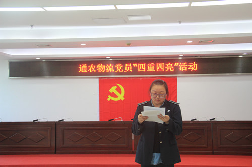 與會(huì)黨員在通農(nóng)物流黨總支書(shū)記、總經(jīng)理徐徑的帶領(lǐng)下,鄭重舉起右拳,面對(duì)黨旗,莊嚴(yán)宣誓,回顧入黨時(shí)的那份初心和莊嚴(yán)承諾,所有黨員同志還結(jié)合自身成長(zhǎng)經(jīng)歷和崗位職責(zé),表達(dá)了自己堅(jiān)定信念和為共產(chǎn)主義奮斗終生的決心。