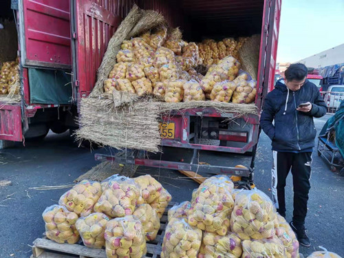 每天凌晨時分,一輛輛滿載著陜西洛川袋裝蘋果的貨車,陸陸續(xù)續(xù)地停在水果交易區(qū)的西北處等待銷售。洛川地處陜北黃土高原的核心地帶,土層深厚,質(zhì)地疏松,無霜期長,降雨適中,雨熱同季。夏無酷暑,冬少嚴(yán)寒,擁有蘋果生長得天獨厚的自然優(yōu)勢,是我國的一大蘋果主要產(chǎn)地。因其產(chǎn)出的蘋果品質(zhì)優(yōu)良,果形優(yōu)美,個大均勻,肉質(zhì)脆密,含糖量高,香甜可口,硬度適中,又耐貯藏而深受人們喜愛。