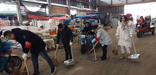 上午九點多,在秩序科陳宗明、張曉建主辦的帶領(lǐng)下,十余名工作人員帶著手套,拿著掃帚、簸箕、鐵鏟等工具從大廳出發(fā),經(jīng)過蔬菜區(qū)各重要通道,穿插于各蔬菜大棚之間。衛(wèi)生清理過程中,當遇到衛(wèi)生死角,工作人員合力將其鏟除;當遇到亂扔垃圾的經(jīng)營戶,工作人員極力宣傳,告知經(jīng)營戶將垃圾扔進垃圾桶,條件不允許時暫時將垃圾存放于攤位,等打烊后交于清潔人員處理;當遇到衛(wèi)生維護較好,積極配合市場做好垃圾管理的經(jīng)營戶時,工作人員會要求他們繼續(xù)保持。