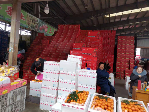 隨著春節(jié)進入倒計時,水果交易區(qū)也迎來了銷售旺季。在交易區(qū)各處,我們可以看到各個攤位前,一箱箱水果堆積如山,各個種類的水果琳瑯滿目。