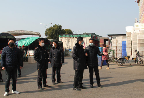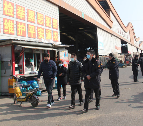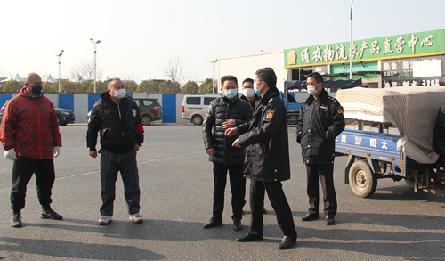 通農(nóng)物流總經(jīng)理徐徑首先向黃局長介紹了通農(nóng)物流在市場內(nèi)采取的防疫手段和防疫方法,黃局長也對通農(nóng)物流市場的防疫工作表達(dá)了肯定,不論是不斷循環(huán)提醒的揚(yáng)聲器,還是隨處可見的指使標(biāo)牌和逢車必檢的工作人員,黃局長都對通農(nóng)物流接地氣的宣傳方式表示了贊賞。黃局長強(qiáng)調(diào),要全面調(diào)動(dòng)市場內(nèi)所有的宣傳資源,一定要用經(jīng)營戶們理解的通俗易懂的方式方法向他們宣傳防疫的重要性,杜絕形式主義!蔬菜區(qū)經(jīng)理呂劍表示,特殊時(shí)期蔬菜區(qū)也重新安排了工作人員,在人員數(shù)量上做減法,減少人員流通,但在工作內(nèi)容上做加法,人員雖然減少但絕不耽誤工作。