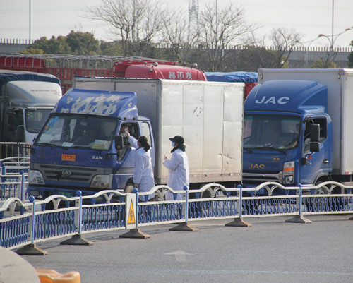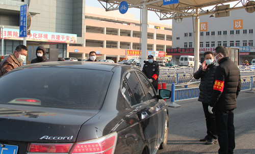 徐總首先去了處于防疫一線的兩個(gè)閘道口,這里由安保部安排了人員依次為進(jìn)入市場(chǎng)的人測(cè)量體溫和檢查口罩佩戴情況,遇到外地牌照車輛一一登記在案,并設(shè)有醒目的指示標(biāo)牌和揚(yáng)聲器循環(huán)提醒進(jìn)場(chǎng)人員配合檢查。徐總強(qiáng)調(diào),現(xiàn)在是特殊時(shí)期,一定要逢車必查,逢人必檢。期間正好有一位來市場(chǎng)進(jìn)貨的車輛駕駛員對(duì)因?yàn)橐獪y(cè)量體溫導(dǎo)致進(jìn)場(chǎng)速度變慢表示不滿,徐總和安保人員一起向他耐心解釋,仔細(xì)勸解,最終他也表達(dá)了對(duì)我們市場(chǎng)工作人員工作的理解。