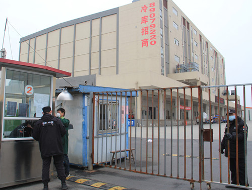 今天是實(shí)行封閉式管理的第一天,可以看到,通農(nóng)物流位于靜海大道東側(cè)的市場(chǎng)西大門入口現(xiàn)已關(guān)閉,僅開放出口,所有大小車輛(含電瓶車等非機(jī)動(dòng)車),均由位于崇川路北側(cè)的市場(chǎng)南門進(jìn)入。為方便員工進(jìn)出場(chǎng),公司特意在冷庫(kù)增開了員工臨時(shí)停車場(chǎng),僅供公司員工上下班通過(guò),外來(lái)人員進(jìn)入冷庫(kù)均必須戴口罩登記身份證并測(cè)量體溫后方可進(jìn)入。