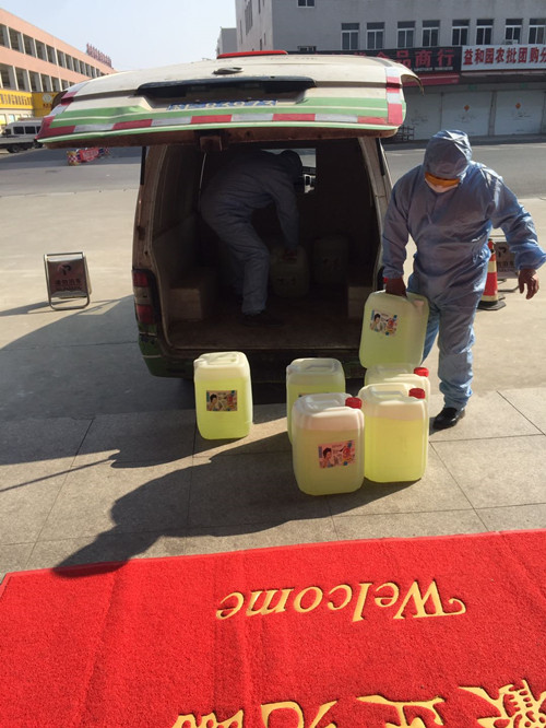為做好疫情防控,顧及全員上下安全,2月1日承包人統(tǒng)一為大家購(gòu)買防疫服。2月4日配送中心積極向公司贈(zèng)送10桶84消毒液,為奮戰(zhàn)在一線的工作人員提供了有利的物資保障。