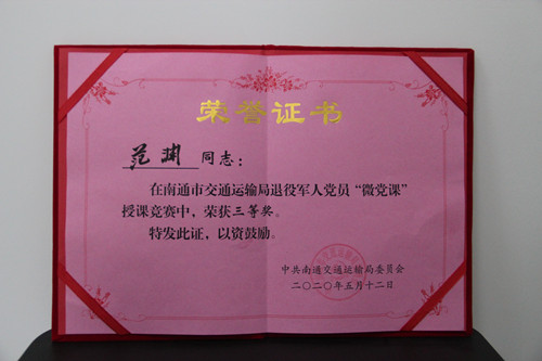 近日,通農(nóng)物流積極報(bào)送80后退役軍人范淵參加由市交通運(yùn)輸局舉辦交通系統(tǒng)退役軍人黨員“微黨課”授課競(jìng)賽,范淵同志在比賽選拔中脫穎而出,講授的《不忘初心、牢記使命,國(guó)家興亡、我的責(zé)任》,與來(lái)自交通各企事業(yè)單位的12名選手同臺(tái)競(jìng)技,最終,榮獲“微黨課”授課競(jìng)賽三等獎(jiǎng)的好成績(jī),為通農(nóng)退役軍人增光添彩,樹立了良好的榜樣。(綜合部 居媛媛)