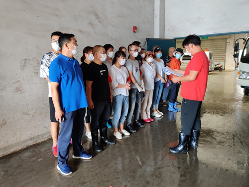 6月28日中午,為貫徹落實(shí)上級(jí)新冠肺炎疫情防控工作部署,切實(shí)提高水產(chǎn)肉類交易區(qū)應(yīng)對(duì)疫情突發(fā)情況的快速反應(yīng),規(guī)范處置,聯(lián)防聯(lián)控的能力,做到疫情防控“早發(fā)現(xiàn)、早報(bào)告、早隔離”切實(shí)保障人民群眾的身體健康和生命安全,水產(chǎn)肉類交易區(qū)召集所有上下午班工作人員舉行了新冠肺炎疫情防控應(yīng)急演練。演練主講人:繆亞山,演練內(nèi)容: