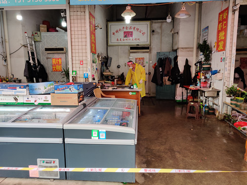 (1)工作人員體溫槍測(cè)量水產(chǎn)大廳A13店面從業(yè)人員體溫異常,立即上報(bào)組長,并通知現(xiàn)場(chǎng)應(yīng)急小組。