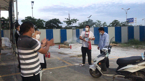 演練活動中秩序科主辦參與并指導(dǎo),針對緊急情況下滅火器正確使用進(jìn)行了詳細(xì)講解,并通過自身過硬的業(yè)務(wù)技能給大家做了現(xiàn)場演示。現(xiàn)場人員分成三組依次進(jìn)行了實(shí)際操作。