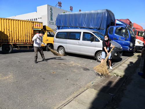 在“回頭看”過程中發(fā)現(xiàn),惠生區(qū)域的環(huán)境衛(wèi)生問題與車輛停放秩序問題同根同源。惠生門口存在嚴(yán)重的亂停車現(xiàn)象,且以大中型貨車為主,車主都有隨手扔垃圾的習(xí)慣。每當(dāng)貨車離開后,地面便會出現(xiàn)許多垃圾,部分塑料袋和飲料瓶在地上很扎眼。當(dāng)日有風(fēng),惠生大廳門口有很多自水果區(qū)吹來的稻草垃圾和少數(shù)果皮垃圾。