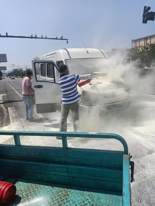 8月19日中午時(shí)分,通欣路與崇川路路口突遇一輛汽車起火,路經(jīng)此地的冷鏈部副經(jīng)理陸杰迅速拿起車載滅火器向著火的汽車沖去,及時(shí)將火勢(shì)控制。但因車載滅火器容量小,陸杰又緊急聯(lián)系冷鏈部保安迅速支援8只大型干粉滅火器,并在路人、保安的熱心幫助下,及時(shí)將火撲滅,未造成人員傷亡。