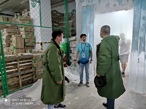 8月18日上午,冷鏈部經(jīng)理袁東帶隊依次進入庫內(nèi)檢查,現(xiàn)場也與商戶進行了溝通和交流。