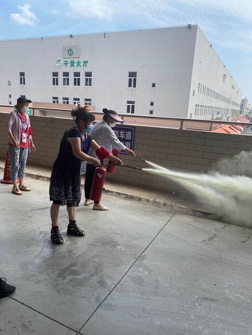 培訓(xùn)分為理論培訓(xùn)和實(shí)踐操作兩部分。理論培訓(xùn)中,顧經(jīng)理重點(diǎn)培訓(xùn)了滅火器的種類、滅火器的使用說明及其對應(yīng)的滅火基本方法,也包括消防水帶、水槍等消防器材的組裝及操作方法。在實(shí)際演練環(huán)節(jié),大家進(jìn)行了分組操作。干貨區(qū)女員工較多,但在演練時(shí),都巾幗不讓須眉,個(gè)個(gè)掌握動(dòng)作要領(lǐng),按規(guī)范要求認(rèn)真操作。