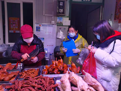 根據(jù)公司相關(guān)要求,春節(jié)前期水產(chǎn)交易區(qū)將對(duì)重點(diǎn)品種(熟食、魚、蝦)加大抽檢力度、增加抽檢頻率,確保水產(chǎn)(肉類)食品銷售安全。1月27日,水產(chǎn)區(qū)食品安全員和現(xiàn)場管理人陪同食安部檢測(cè)人員對(duì)熟食區(qū)進(jìn)行全面抽檢,針對(duì)熟食區(qū)牛雜、牛腸、牛肚、牛頭肉、豬頭肉這五種亞硝酸鹽容易超標(biāo)的重點(diǎn)品種進(jìn)行每戶必抽,其他熟食制品隨機(jī)抽檢,增加品種和頻率,確保熟食抽檢無死角全覆蓋。