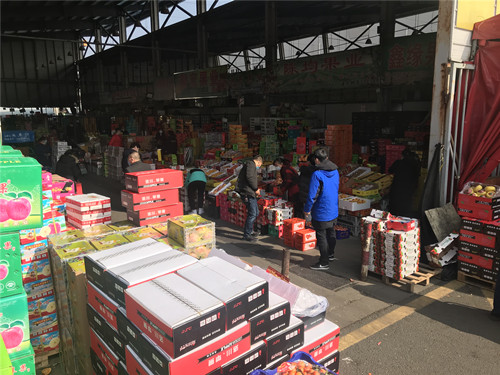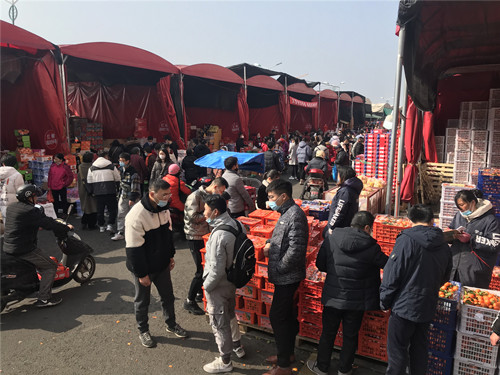 節(jié)日臨近,水果攤位上,十多位工人穿梭來去,忙著搬運剛到貨的一車砂糖橘。走進水果大棚,經(jīng)營戶們或忙著為顧客挑選成箱的果品,或?qū)⑦x好的一箱箱商品搬上送貨的電動三輪,一刻不得閑……