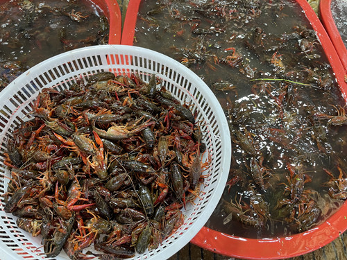 如果每個(gè)季節(jié)都有它的招牌美食的話,那么這個(gè)時(shí)節(jié)的美味必然是小龍蝦,只有它才能在這炎炎夏日撩撥起久經(jīng)考驗(yàn)的食客的味覺神經(jīng)。水產(chǎn)肉類交易區(qū)里,小龍蝦的銷量穩(wěn)步提升,老百姓們開開心心買上當(dāng)季美食,回家各有各的吃法:清蒸小龍蝦、蒜泥小龍蝦、冰鎮(zhèn)小龍蝦、十三香小龍蝦……2021年的第一頓小龍蝦,你吃了嗎?