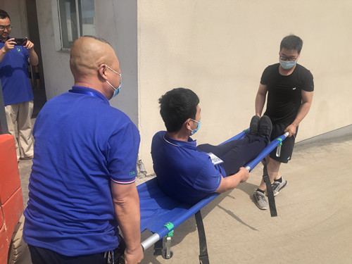 演練現(xiàn)場(chǎng)模擬了“一名現(xiàn)場(chǎng)管理員被工作中的叉車(chē)誤碰撞,導(dǎo)致該現(xiàn)場(chǎng)管理員受傷倒地”突發(fā)事件。演練中各人員按照各自的職責(zé)任務(wù),迅速到位,通過(guò)采用停車(chē)檢查、立即上報(bào)、緊急救援、擔(dān)架抬離、秩序維護(hù)、及時(shí)送醫(yī)等措施,最大限度減少事故對(duì)人員的傷害,整個(gè)現(xiàn)場(chǎng)人員到位及時(shí),履職迅速,現(xiàn)場(chǎng)救援規(guī)范有序,有條不紊,真實(shí)感強(qiáng),使得在場(chǎng)員工通過(guò)此次演練熟悉了應(yīng)對(duì)事故的程序,掌握了應(yīng)對(duì)經(jīng)驗(yàn)和知識(shí)。