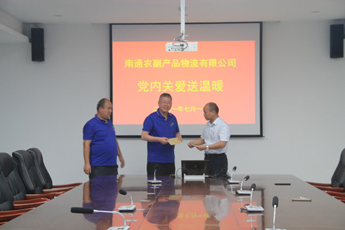 活動結束以后,通農物流黨總支書記闞君成對袁東、李愛民兩位黨員進行黨內關愛慰問。袁東同志在手術還未康復的情況下帶頭沖向一線,作為一名黨員干部積極投身于南通市“進口冷鏈食品監(jiān)管倉”的緊急籌建中,為抗擊疫情貢獻出自己的一份力量。李愛民同志是水果區(qū)一名普通職工,平時在自己的崗位上兢兢業(yè)業(yè),家中經濟條件困難,但不影響他積極陽光的工作心態(tài):獻血、拔河…只要是能鼓舞人心、團結上下的活動,他都積極參加。