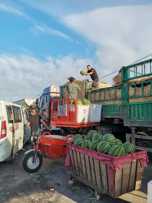 近期南通酷暑炎熱,高溫來襲,西瓜成為最為暢銷的水果。來自新疆、河南、東北的西瓜源源不斷地運往水果交易區(qū),交易量由原來的每天一百多噸飆升到現(xiàn)在的每天三百多噸。