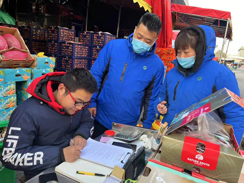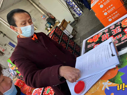 排查中,水果區(qū)按照重點(diǎn)片區(qū)排查和日常巡查檢查相結(jié)合的方式,加大力度開展進(jìn)口水果排查工作,嚴(yán)格執(zhí)行索證索票,同時(shí)簽訂《進(jìn)口水果銷售安全責(zé)任承諾書》。對(duì)其中出現(xiàn)的不符合“三專”要求標(biāo)準(zhǔn)或缺少相關(guān)證明的進(jìn)口水果實(shí)施登記,并要求經(jīng)營(yíng)戶立即下架,等待后續(xù)核酸檢測(cè)結(jié)果,合格后才可繼續(xù)銷售。水果區(qū)經(jīng)理范一凡要求各片區(qū)責(zé)任人每天巡查后,填寫《進(jìn)口水果疫情防控檢查表》,如實(shí)做好記錄。