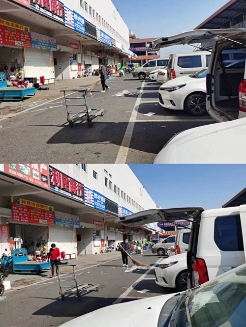 為切實打好“家門口”的這場疫情防控攻堅戰(zhàn),水產(chǎn)交易區(qū)胡德明經(jīng)理率領(lǐng)員工加大交易區(qū)的環(huán)境整治工作。對主要道路進(jìn)行清掃工作,衛(wèi)生死角進(jìn)行了集中徹底清理,安排員工分散式清理過道、大棚、水產(chǎn)大廳。