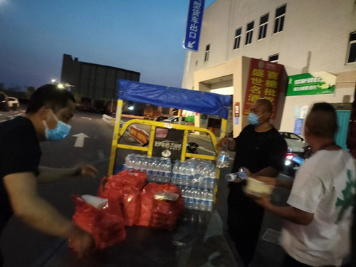 蔬菜部管理人員還為駕駛員們定時送上熱乎可口的飯菜和礦泉水,做好一切后勤服務(wù)工作。同時,管理人員提醒廣大駕駛?cè)藛T,在進入農(nóng)批市場前,一定要提前與經(jīng)營戶溝通,了解最新防疫政策要求,做好入場準(zhǔn)備工作,加速通過審核,減少等待時間。
