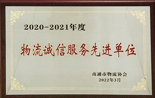 2022年3月,南通農(nóng)副產(chǎn)品物流有限公司通過(guò)南通市物流協(xié)會(huì)的復(fù)核審查,再次榮獲“南通市物流行業(yè)2020-2021年度誠(chéng)信服務(wù)先進(jìn)單位”稱號(hào)。