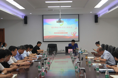 隨后,通農(nóng)物流第二黨支部書記呂劍同志從通農(nóng)物流高度重視食品安全問題,疫情期間勇承擔(dān)、力保食品安全可靠,疫情防控常態(tài)化期間推進多項食品專項活動,扎實落實食品安全日常管理工作,不忘初心、牢記使命,守護舌尖上的安全幾個方面交流了“舌尖上的安全”黨建品牌建設(shè)情況。