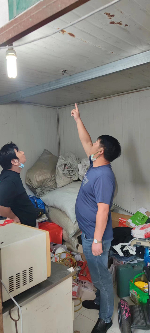 檢查中,參與檢查的人員首先對(duì)通道貨物亂堆亂放、雜物堵塞防火門等現(xiàn)象進(jìn)行了清理,告知經(jīng)營(yíng)戶消防通道嚴(yán)禁堆放貨物以及停放車輛,一旦發(fā)現(xiàn)嚴(yán)肅處理。隨后發(fā)現(xiàn)有部分經(jīng)營(yíng)戶用電安全不規(guī)范,接線板用透明膠帶包裹,存在安全隱患,檢查小組當(dāng)場(chǎng)沒收并銷毀。最后重點(diǎn)對(duì)外墻小廣告、廢舊廣告牌、外圍雜物垃圾進(jìn)行了清理。