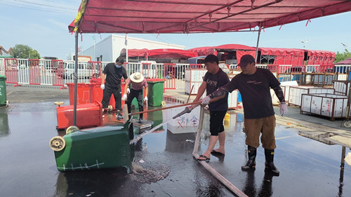 進(jìn)入夏季,垃圾桶里的垃圾極易發(fā)生腐敗變質(zhì),加之各類瓜果大量上市,蚊蠅進(jìn)入繁殖期,藏污納垢的垃圾桶嚴(yán)重影響交易區(qū)內(nèi)的環(huán)境衛(wèi)生。為提升市場環(huán)境質(zhì)量,解決場內(nèi)垃圾桶表面臟污、氣味難聞等問題。近日水果區(qū)班組成員及安全管理人員對交易區(qū)內(nèi)的垃圾桶進(jìn)行了清洗。