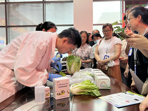 活動(dòng)現(xiàn)場(chǎng)設(shè)置了“你點(diǎn)我檢”快檢點(diǎn),現(xiàn)場(chǎng)快檢農(nóng)產(chǎn)品,不少經(jīng)營(yíng)戶和消費(fèi)者拿著自己的大白菜、芹菜、茄子等前來(lái)檢測(cè),讓消費(fèi)者和經(jīng)營(yíng)戶近距離觀看檢測(cè)過程,成為食品安全的參與者、見證者和監(jiān)督者。部分經(jīng)營(yíng)戶和消費(fèi)者對(duì)農(nóng)藥殘留快篩檢測(cè)試劑盒很感興趣,他們表示想在購(gòu)買或進(jìn)貨前先用試劑盒檢測(cè),避免買到農(nóng)藥殘留超標(biāo)的菜品。“你點(diǎn)我檢”活動(dòng)拉近了經(jīng)營(yíng)戶、消費(fèi)者與農(nóng)產(chǎn)品檢驗(yàn)檢測(cè)的距離,進(jìn)一步提高了食品安全防范意識(shí),增強(qiáng)了廣大群眾食品安全自我保護(hù)能力。