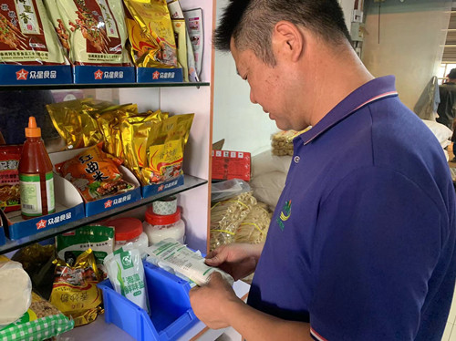干貨配送區(qū)主辦陳曉偉及片區(qū)在崗人員一是檢查經(jīng)營戶是否具有經(jīng)營資質(zhì)、是否存在超范圍經(jīng)營情況;二是檢查是否從正規(guī)合法渠道采購食鹽,生產(chǎn)日期和保質(zhì)期是否在有效期內(nèi);三是檢查經(jīng)營戶食鹽外包裝是否有標(biāo)簽標(biāo)識;四是檢查經(jīng)營戶進(jìn)銷貨臺賬登記是否齊全、索票索證制度落實(shí)情況。檢查過程中,干貨配送區(qū)主辦陳曉偉向經(jīng)營戶宣傳《食品安全法》、《食鹽專營辦法》等法律法規(guī),以及銷售來源不明食鹽、存在質(zhì)量問題的食鹽等違法違規(guī)行為,引導(dǎo)經(jīng)營戶合法誠信經(jīng)營,督促經(jīng)營戶嚴(yán)格執(zhí)行進(jìn)貨查驗(yàn)、索票索證等制度,確保食鹽來源可追溯。