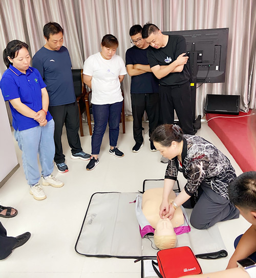隨后,由南通市紅十字會志愿者張老師采用“理論+實操”相結(jié)合的培訓(xùn)方式,用淺顯易懂的語言,穿插生活中的典型案例,詳細(xì)講解了基本急救知識、心肺復(fù)蘇、氣道異物解除等技術(shù)要領(lǐng),并現(xiàn)場為大家演示心肺復(fù)蘇、自動體外除顫儀(AED)設(shè)備規(guī)范使用、海姆立克急救法等實操技能。培訓(xùn)現(xiàn)場氣氛活躍,學(xué)員們積極參與互動。本次培訓(xùn)讓大家對應(yīng)急救護(hù)知識運(yùn)用于實踐有了更深入的了解。
