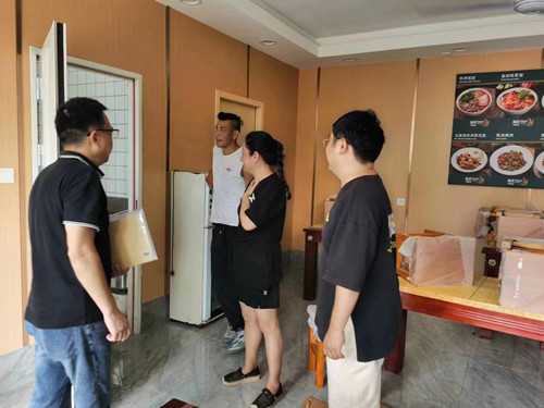 干貨配送區(qū)商業(yè)樓的幾家飯店積極落實(shí)餐飲場(chǎng)所“瓶改管”工作。前期,干貨配送部對(duì)接物業(yè)及燃?xì)夤荆瓿闪巳細(xì)馔夤芗皟?nèi)管的鋪設(shè)。9月11日下午,片區(qū)責(zé)任人王韜協(xié)同燃?xì)夤救藛T逐戶驗(yàn)收接通各類燃?xì)庑孤侗Wo(hù)設(shè)施。