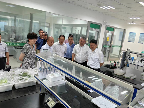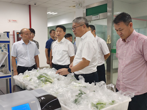 考評組實地考察了通農(nóng)物流蔬菜交易區(qū)和農(nóng)產(chǎn)品檢驗檢測中心。在通農(nóng)物流檢驗檢測中心觀看了通農(nóng)物流的宣傳片,查看了農(nóng)產(chǎn)品檢驗檢測工作情況,并重點詢問了市場農(nóng)產(chǎn)品溯源系統(tǒng)的推進(jìn)情況、農(nóng)產(chǎn)品檢驗檢測合格率及不合格處置情況。通農(nóng)物流黨總支書記、董事長闞君成向考評組介紹了通農(nóng)物流目前的運營情況,并就食品安全及“菜籃子”產(chǎn)品供給、流通、調(diào)控等方面工作進(jìn)行了深入交流。