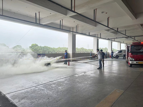 演練于下午2點正式開始。首先,模擬了在糧油大廳二樓西側停車場貨車發(fā)生自燃,濃煙滾滾的場景。然后,通訊組成員在接到火情報警后及時向“119”消防救援部門報警(模擬),疏散引導組成員將大家迅速有序地疏散到安全區(qū)域。安保部應急救援小組在應急救援預案啟動后3分鐘之內(nèi)迅速駕駛公司自備消防車到達失火地點,聽從指揮人員的統(tǒng)一指揮,利用消防車實施撲救,防止火勢蔓延。