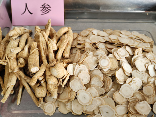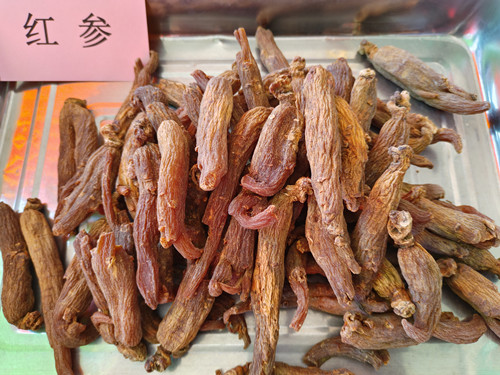 在通農(nóng)物流干貨交易區(qū)5號(hào)大廳店鋪內(nèi),可以看到參類(lèi)品種有很多,常見(jiàn)的有人參、紅參、高麗參、西洋參等。近期購(gòu)買(mǎi)人參、紅參、高麗參的人群逐漸增多,以達(dá)到“冬養(yǎng)陰氣”、“養(yǎng)腎防寒”的目的。人參是一種珍貴的藥材,具有大補(bǔ)元?dú)狻⑸虻茸饔谩<t參是人參的熟用品,有補(bǔ)元?dú)狻⒁鏆鈹z血的功效。高麗參又為朝鮮參,具有生津安神、抗疲勞、增強(qiáng)免疫力等作用。冬季手腳冰涼者,紅參和高麗參是不錯(cuò)的選擇。