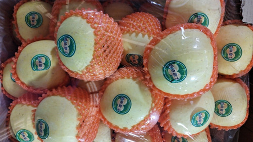 粉面的金帥蘋果,蘋果味很濃,老少皆宜,價格在3.5-4.5元/斤。奶油蘋果,超薄的果皮內(nèi)裹著嫩黃的果肉,奶香四溢,價格在4-5.5元/斤。陜西洛川蘋果,自然成熟,脆甜多汁,價格在3.5-6.5元/斤。煙臺紅富士蘋果以其碩大、色澤鮮艷、口感脆甜而聞名,甜度高,口感極佳,無論是新鮮食用還是加工成果汁、果醬食用,都能滿足不同人群的口味需求,價格在3-7元/斤。瑞雪蘋果,國產(chǎn)蘋果的“杠把子”,好口感,高顏值,價格在5-9元/斤。蛇果,原產(chǎn)地美國加州,果皮較厚堅(jiān)硬,表面有縱向的條紋和斑點(diǎn),果肉相對比較細(xì)膩,口感稍微有些干澀,價格7元/斤。(水果區(qū) 曹丹丹)